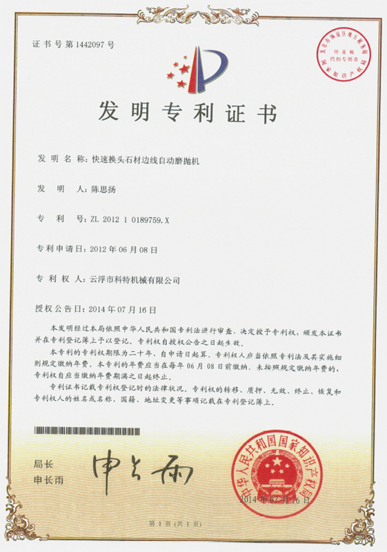 企業(yè)組建了“云浮市石材機(jī)械裝備工程技術(shù)研究開(kāi)發(fā)中心”,并與高校和科研院所密切合作,致力于光機(jī)電一體化產(chǎn)品的研發(fā)、生產(chǎn)、銷(xiāo)售和服務(wù)。主要產(chǎn)品有框架鋸、全自動(dòng)連續(xù)磨拋機(jī)、橋式自動(dòng)切割機(jī)、全自動(dòng)仿形石線機(jī)、數(shù)控金剛石繩鋸、裁切機(jī)等。產(chǎn)品具有自動(dòng)化程度高、加工精度高和生產(chǎn)效率高等特點(diǎn)。產(chǎn)品除國(guó)內(nèi)銷(xiāo)售外,還出口到歐美、東南亞、韓國(guó)、印度、中東、非洲、俄羅斯、澳大利亞等國(guó)家和地區(qū),深受用戶好評(píng)。“橋式自動(dòng)切割機(jī)”被認(rèn)定為廣東省高新技術(shù)產(chǎn)品,擁有發(fā)明專(zhuān)利1項(xiàng)、實(shí)用新型專(zhuān)利1項(xiàng)。